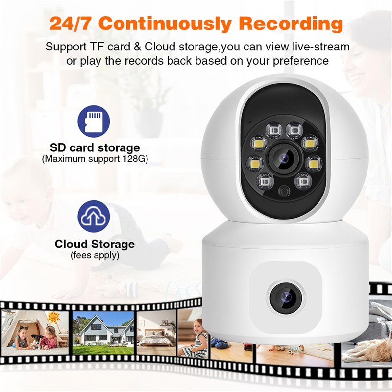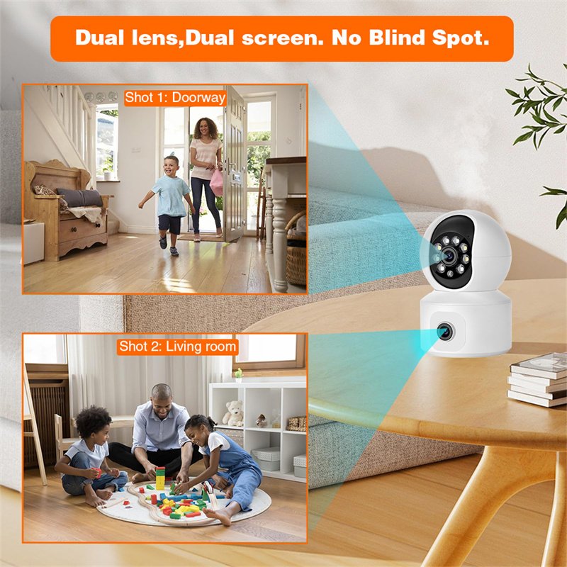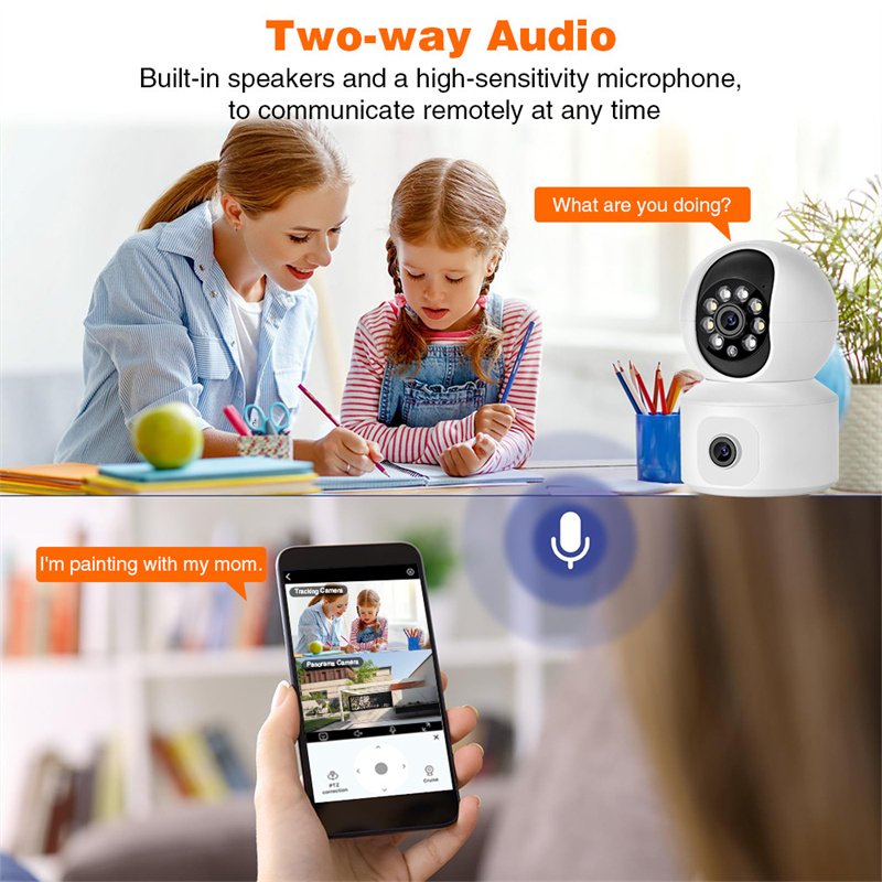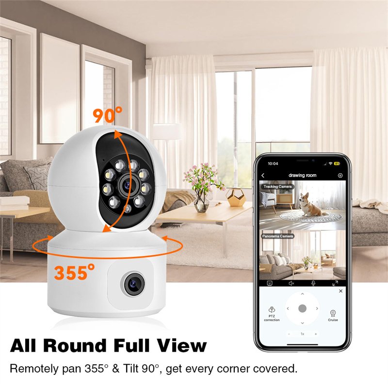 360 ° pan tilt panoramic cruise control: with a horizontal rotation range of 355 ° and a vertical rotation range of 90 °, it supports remote control or preset cruise routes through mobile apps. Blind spots such as under sofas and behind bookshelves no longer become monitoring blind spots;