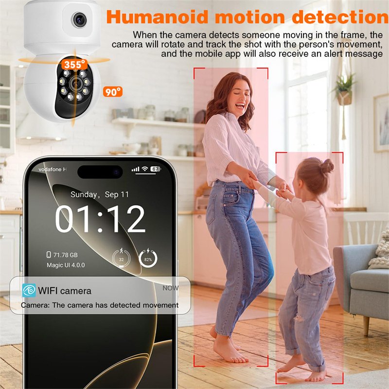 Dynamic object tracking and locking: using millimeter wave radar and visual fusion technology, real-time detection of moving objects (humanoid/pet/vehicle), the camera automatically follows the target rotation to ensure that abnormal situations are not lost or missed;