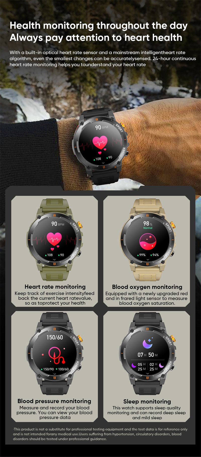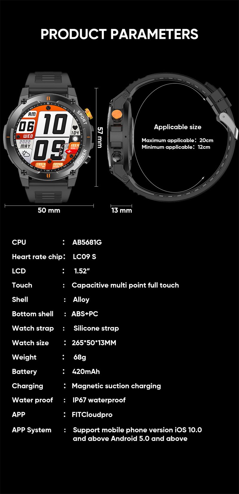 Bluetooth 5.3 technology ensures stable connection between the wristband and mobile phone, supporting call/message reminders, music control, and remote photography functions. The 1.47-inch full touch high-definition large screen, combined with a customizable dial, easily adapts to business, sports, or leisure scenes. Long battery life (7-10 days standby) Say goodbye to frequent charging troubles, magnetic fast charging design can be fully charged in 30 minutes, meeting the needs of all-weather use.