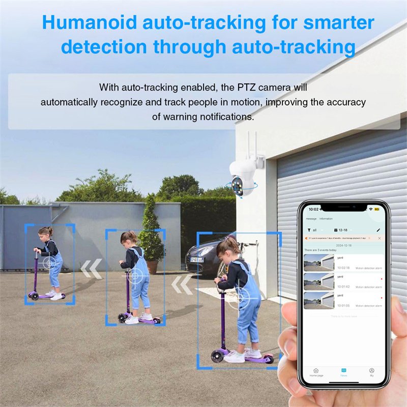 Tracking and tracking technology: After AI mobile object recognition is activated, the camera automatically locks onto the moving target (such as a person, pet, or vehicle) and rotates with its movement trajectory to ensure that the target does not leave the field of view. ​